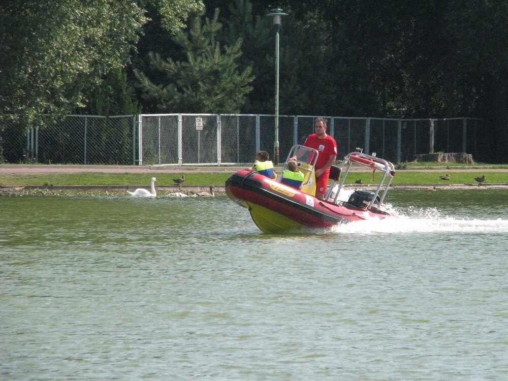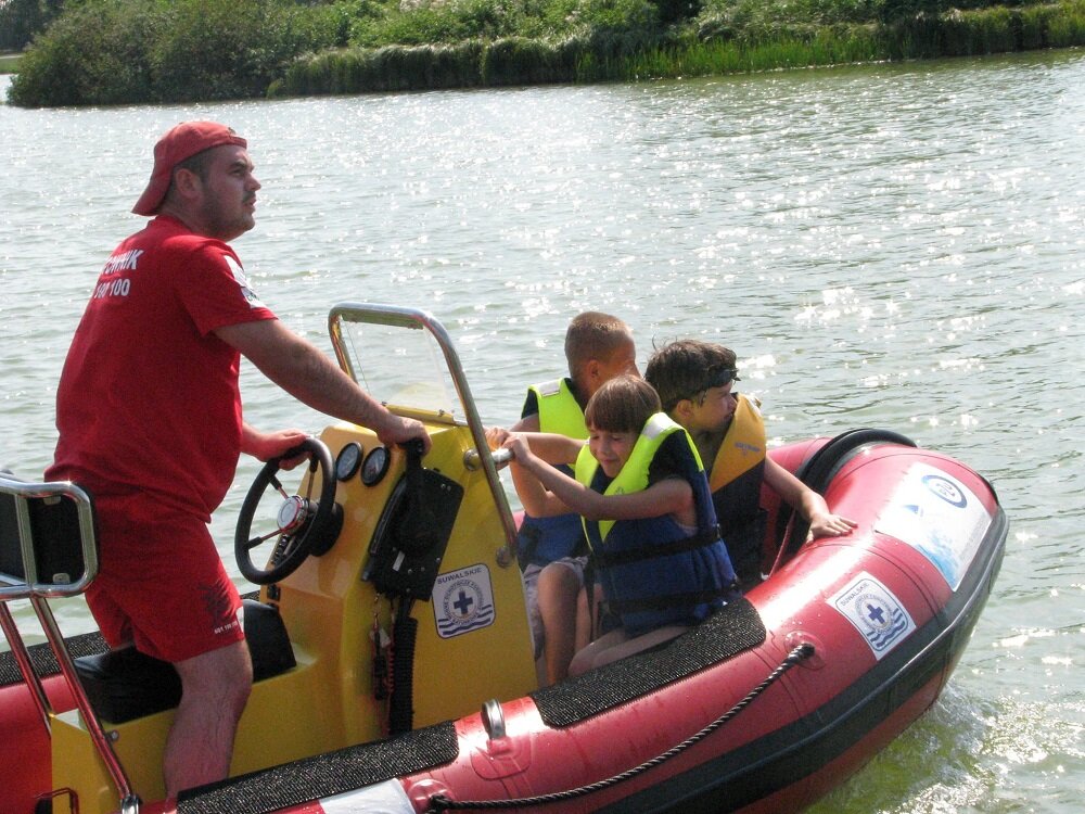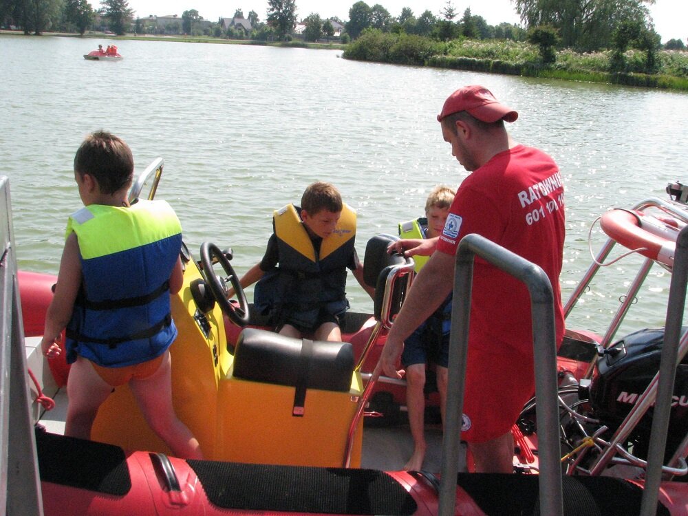 Największą atrakcją dla wszystkich uczestników zabawy był rejs ratowniczą łodzią motorową po Zalewie Arkadia